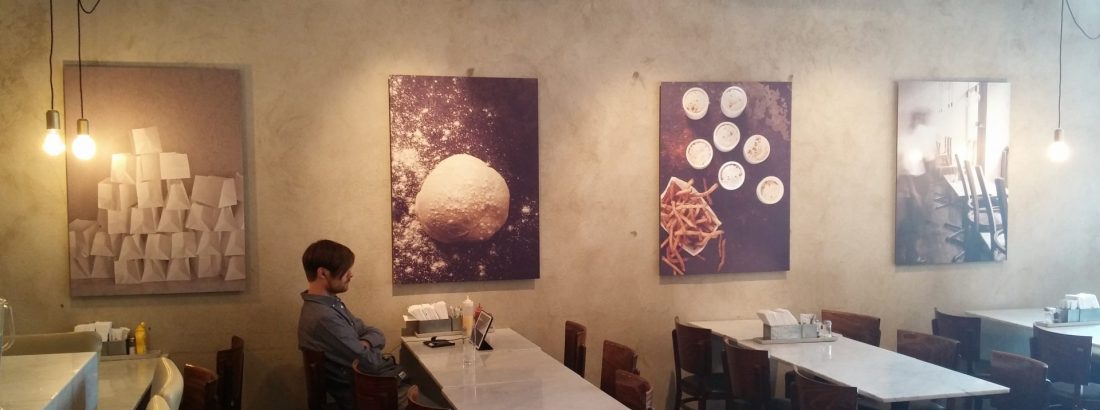 Vi har fått förtroendet att smycka Phil’s Burgers alla restauranger. Vi trycker deras rustika matmotiv på plåt som är upphängd med “dold upphängning”.